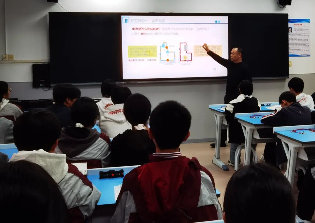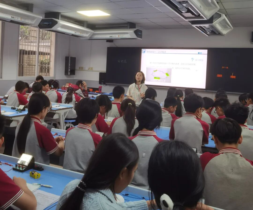 探寻万物运转的“源代码”物理组的课堂,是探索世界本质的旅程。老师们深入浅出,带领学生叩响电、声、光世界的大门。从驱动电荷的电压 ,到川流不息的电流 ;从简单电路的电流规律,到丰富多彩声的世界 ,再到穿越时空的光的传播。老师们利用AI仿真实验,将无形的物理规律化为一道道清晰可见的轨迹,让学生仿佛手握解码万物运转的钥匙,直抵自然规律的核心。